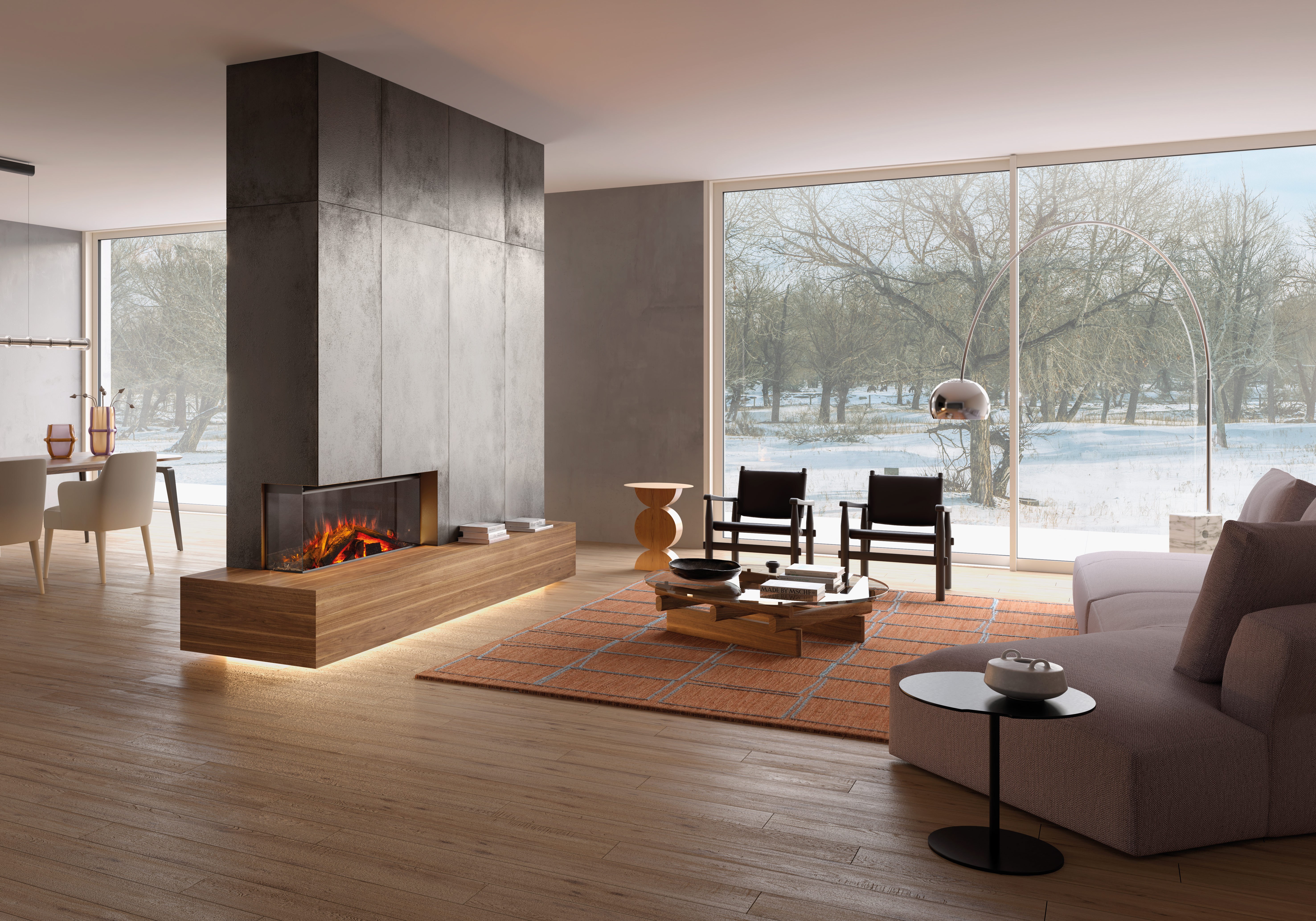 Lumen utilizza un sistema avanzato di illuminazione LED, composto da numerosi punti luce per un effetto fiamma in sintonia con i nostri camini tradizionali. I LED inferiori simulano le braci con tonalità tra rosso e giallo, mentre i downlight superiori creano un’illuminazione d’atmosfera diffusa su ogni ceppo di legna. L’intensità luminosa posteriore è facilmente regolabile su tre livelli di velocità e intensità tramite telecomando, oppure in modo dettagliato con l’app dedicata.